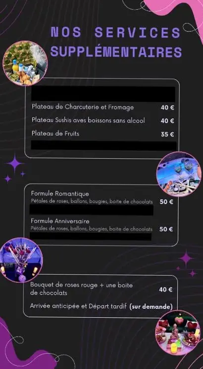Veuillez informer l'établissement GALAXY SPA - Suite Neptune Jacuzzi et Sauna Privatif à l'avance de l'heure à laquelle vous prévoyez d'arriver. Vous pouvez indiquer cette information dans la rubrique « Demandes spéciales » lors de la réservation ou contacter directement l'établissement. Ses coordonnées figurent sur votre confirmation de réservation.